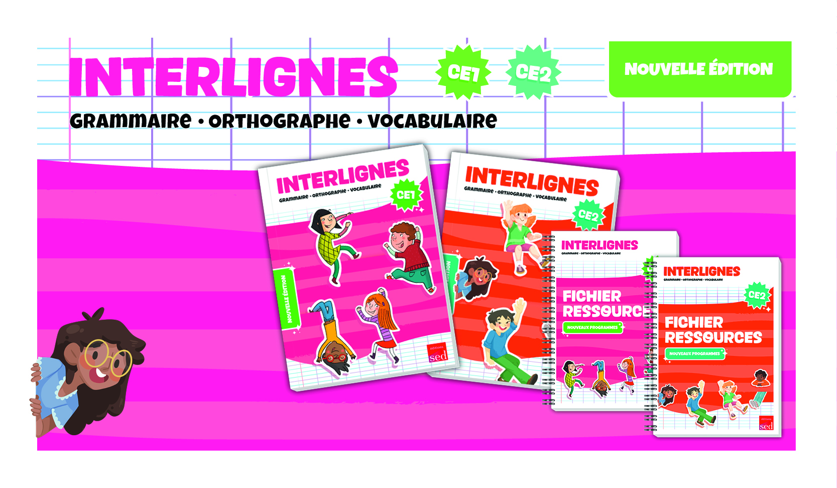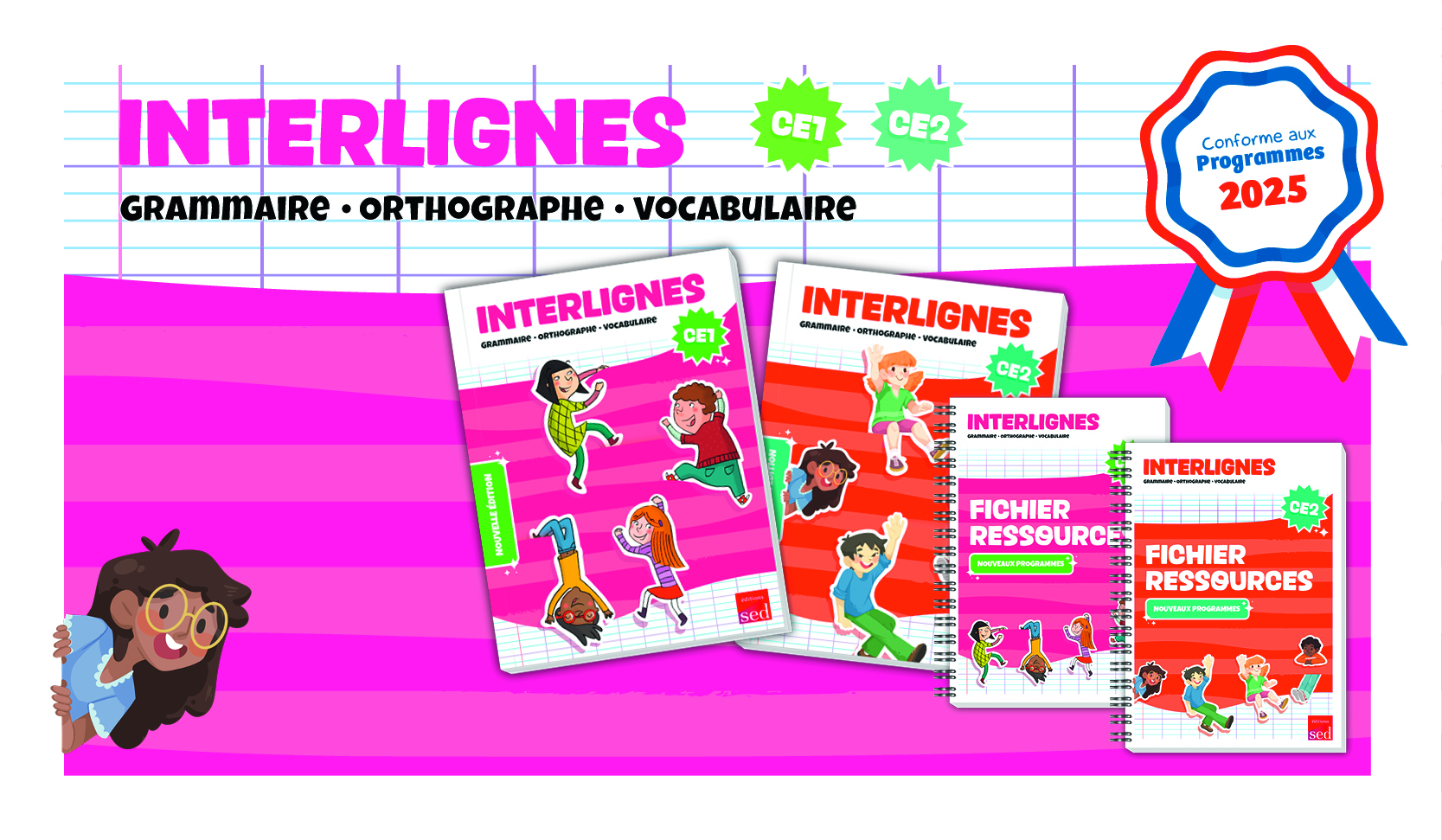Nous souhaitons vous informer que le manuel et le fichier ressources Interlignes EDL CE1 (nouveaux programmes) sont en cours d’impression ! Ils seront tous deux disponibles à la vente à partir du 20 avril 2026. Vous pouvez d’ores et déjà prendre des commandes dans les écoles que vous visitez, en prévenant