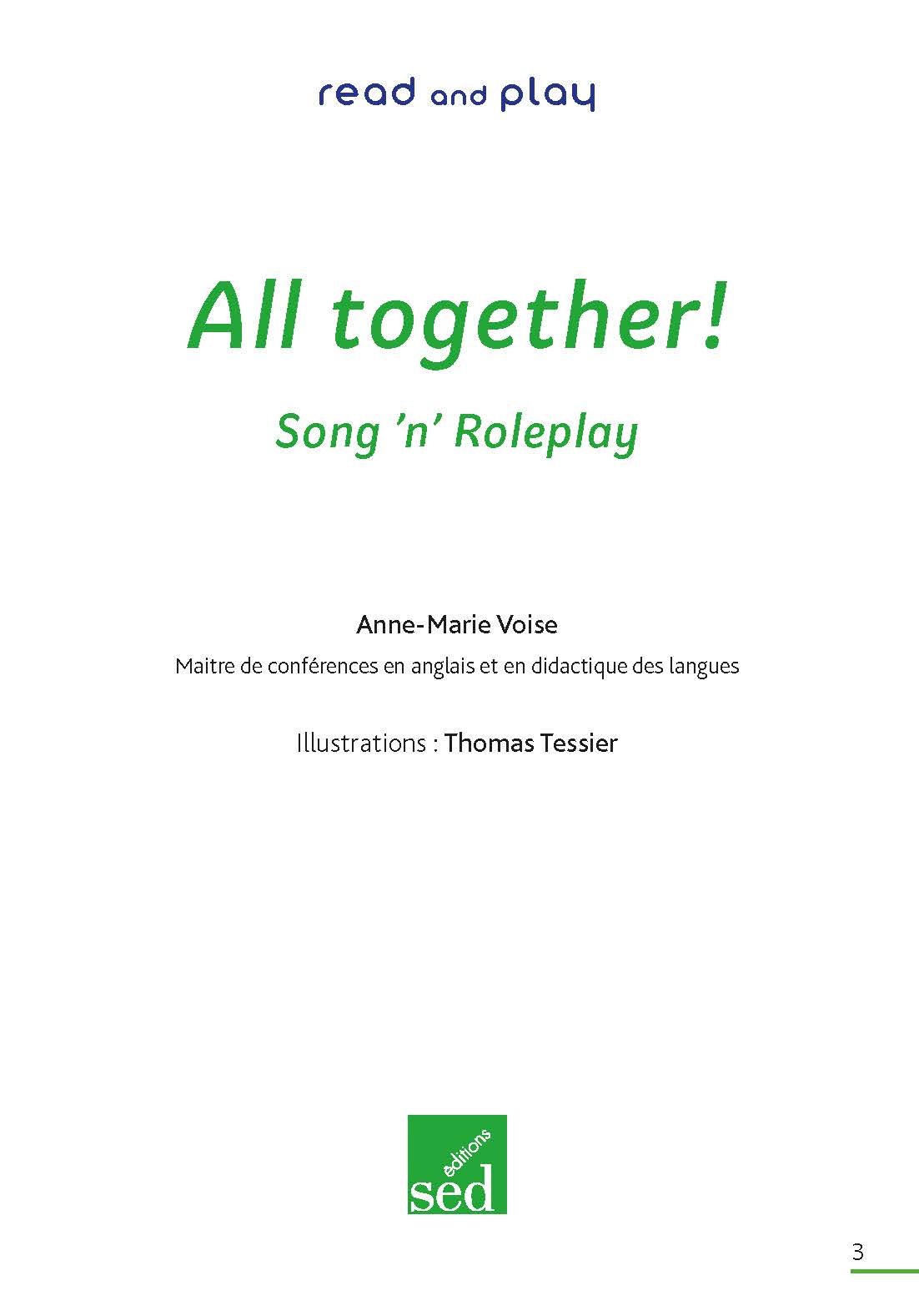All Together! est un recueil de 10 chansons traditionnelles et de 10 saynètes se rapportant à ces chansons. Il permet à l’élève de découvrir des éléments essentiels de la culture anglophone et de pratiquer la lecture selon deux usages du texte : le jeu dramatique et le chant.