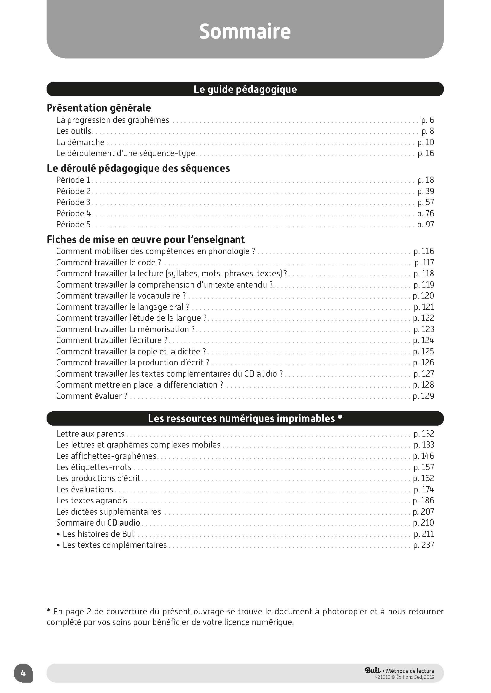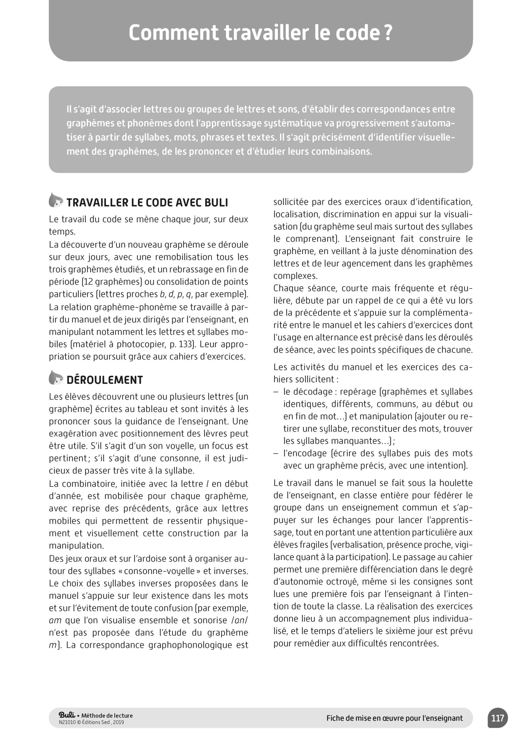 La méthode de lecture Buli, actualisée pour répondre pleinement aux exigences des programmes 2025, a pour objectif de permettre à tous les élèves d’apprendre à lire de manière sûre, progressive et explicite, en intégrant les deux axes fondamentaux de la lecture : la maîtrise du code et l’accès à la compréhension. Méthode syllabique, elle part des graphèmes (lettres et groupes de lettres) et de leurs prononciations (les sons) pour conduire à leurs combinaisons en syllabes, puis en mots. Tous les mots, phrases et textes proposés à la lecture sont entièrement déchiffrables dès le début de l’année, renforçant la confiance des élèves dans leurs capacités.La compréhension de textes écoutés, puis progressivement lus par les élèves, est régulièrement travaillée à partir des aventures du personnage Buli l’extraterrestre, ainsi que d’autres récits. La méthode inclut de nombreuses révisions, pour que les élèves puissent s’approprier, mémoriser et automatiser les apprentissages, dans un cadre structuré et cohérent avec les nouveaux repères pédagogiques.