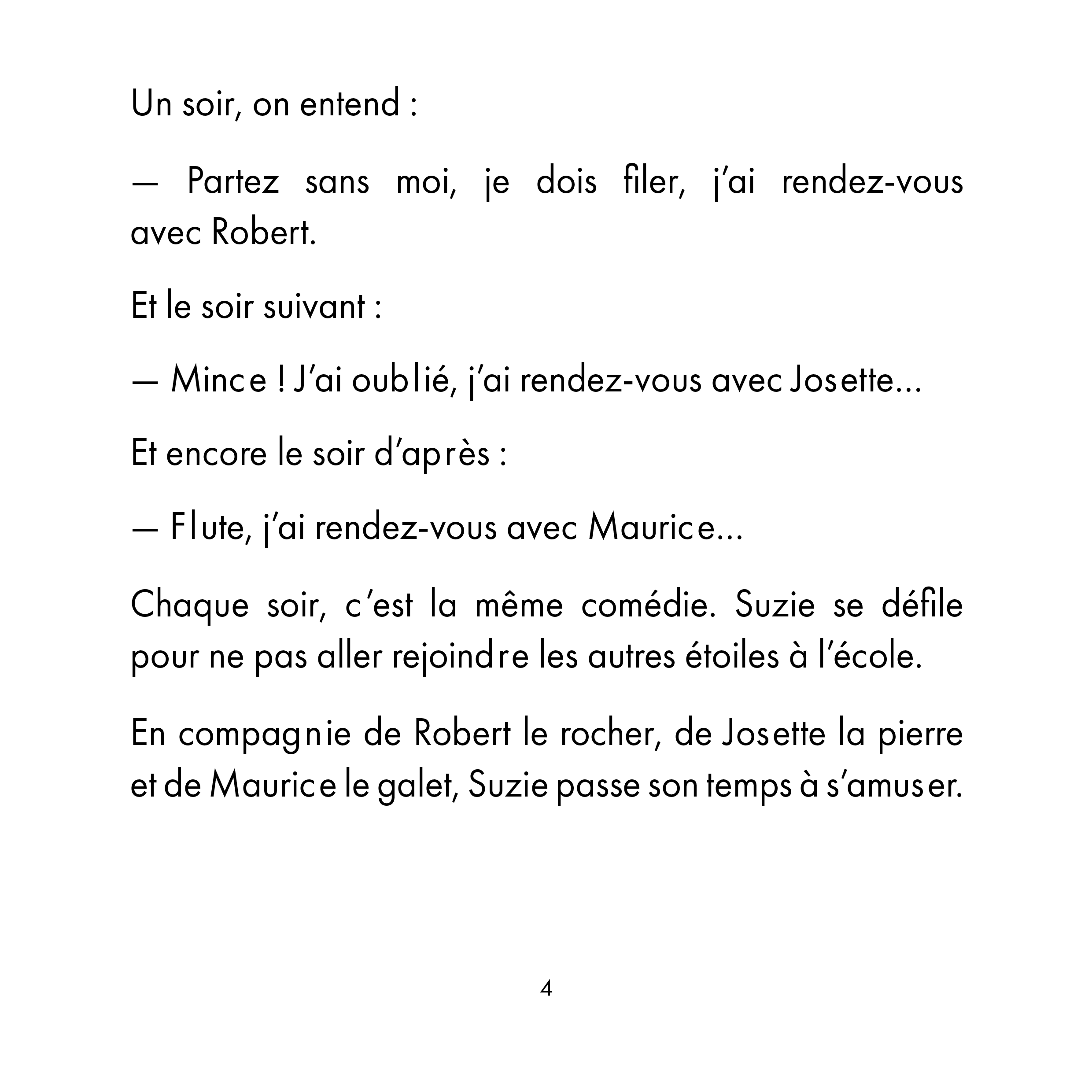 Suzie évite l’école par peur des moqueries. Pourtant, au cours de cette aventure aussi folle que bienveillante, ses amis lui montrent sa vraie valeur. Une ode à la confiance en soi et aux différences. -
