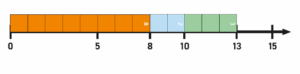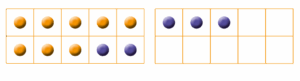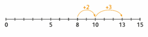 L’élève voit concrètement : 8 + 5 = 8 + 2 + 3 = 10 + 3 = 13
