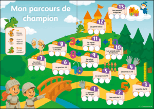 Quand l’élève maîtrise la stratégie, il passe un test chronométré (1 minute). Selon son score, il obtient une médaille bronze, argent ou or qu’il colle sur son parcours du champion.